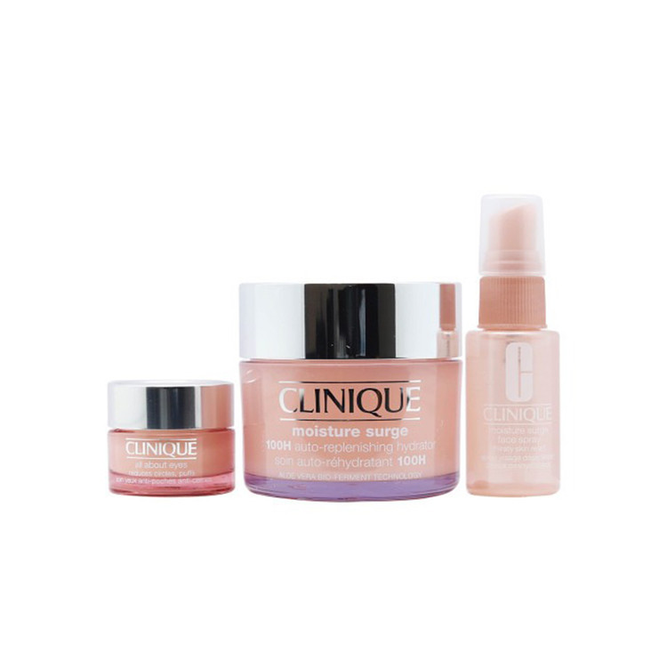 آبرسان 100 ساعته 125 میل Clinique moisture surge 100H کرم دور چشم 15 میل Clinique all about eyes اسپری آبرسان 30 میل Clinique moisture surge face spray