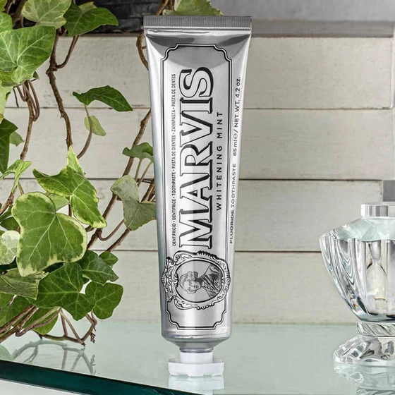 این خمیر دندان با فرمول اصلی Ludovico Martelli که تحت یک روش پردازش سنتی ایتالیایی قرار می گیرد، ساخته شده که بافت متراکم و فشرده آن برای حداکثر محافظت و لبخندی سفید و بسیار درخشان تضمین کند. این خمیر دندان لوکس پیشرفته، تغییر رنگ سرسخت ناشی از نیکوتین، چای، قهوه، غذاهای اسیدی و شراب قرمز را از بین می برد. Marvis Smokers Whitening Mint یک احساس خنکی ایجاد می کند که توسط برگ های “خنک” نعناع شکل می گیرد که طراوت فراموش